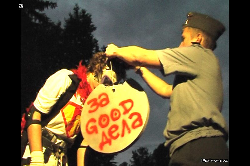 | (5) Авторитет Место - открытое кафе. Сходка преступников, хулиганов. Появляется супергерой. Преступники, увидев его, в ужасе убегают. Место - открытая площадка, площадь, стадион. Милиционер награждает супергероя медалью за хорошие дела. Супергероя качают на руках его поклонники. |