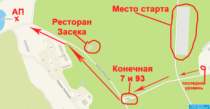 Вам необходимо восстановить маршрут движения машины Ночного Дозора. Но данная информация не для всех, поэтому выбирая правильные варианты ответов, двигайтесь, отсчитывая перекрёстки с улицами (въезды во дворы и дороги, не имеющие названия улиц, не считаются): 1. Там, где улица Гоголя упирается в улицу Калинина, встаньте так, чтобы ровно перед вами был Автотехцентр М5, а остановка с прошлого уровня была по правую руку от вас. 2. Посмотрите на стэллу, которая находится слева от вас. Если год основания, указанный на стэлле 1943, то поверните налево. Если год основания 1949, то поверните направо. Если год основания 1939, то развернитесь. 3. Продолжайте движение в заданном направлении до ближайшего светофора. Если около него есть аптека, продолжайте движение прямо. Если есть секс-шоп, поверните налево. Если заправка, то развернитесь. 4. Продолжайте движение в заданном направлении до ближайшего светофора на перекрестке дорог (светофор у пешеходного перехода не считается). Если на этом перекрестке есть организация, в названии которого упоминается особь женского пола, поверните направо. Если есть организация, в котором упоминается Ночной дозор, поверните налево. Если на данном перекрестке нет организаций, продолжайте движения прямо. 5. Продолжайте движение в заданном направлении до ближайшего светофора на перекрестке дорог. Если в фильме "Ночной Дозор" играл солист группы "Алиса", поверните налево, если солист группы "Наутилус Помпилиус" - продолжайте движение прямо, если солист группы "Мумий Тролль", поверните налево. 6. Продолжайте движение в заданном направлении до ближайшего светофора на перекрестке дорог. Если в фильме "Ночной Дозор" на рынке Городецкий пил говяжью кровь, поверните направо. Если свиную - поверните налево, если человеческую - езжайте прямо. 7. Продолжайте движение в заданном направлении до ближайшего светофора на перекрестке дорог. Если на перекрестке если на перекрестке современная рекламная конструкция - поверните направо, если нет - поверните налево. 8. Продолжайте движение в заданном направлении до ближайшего светофора на перекрестке дорог. Если на здании сразу за перекрестком (по левой стороне перекрестка) вы видите животное в логотипе одной из организаций, езжайте прямо. Если не видите - поверните налево. 9. Продолжайте движение в заданном направлении до ближайшего светофора на перекрестке дорог. Если у светофора есть знак "СТОП" , продолжайте движение прямо, если знак "Переход для слепых" - поверните налево, если знаков нет - поверните направо. 10. Продолжайте движение в заданном направлении до ближайшего светофора на перекрестке дорог. Если на этом перекрестке слева есть указатель, на котором 3 улицы - поверните направо, если 4 улицы - поверните налево, если указателя с улицами нет - продолжайте движение прямо 11. Продолжайте движение в заданном направлении , пока не закончится главная дорога. Если на этом перекрестке вам не остается выбора, куда поворачивать, то повинуйтесь предписанию знака. Если на этом перекрестке нет знаков, предписывающих движение в определенную сторону, развернитесь. 12. Продолжайте движение в заданном направлении до ближайшего светофора на перекрестке дорог. Если на данном перекрестке есть картинка с изображением полуобнаженной блондинки, поверните направо, если есть изображение ножниц - поверните на