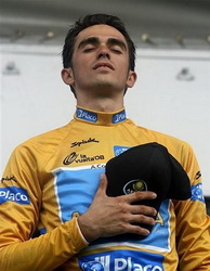 Гимн звучит в честь испанского велогонщика, и Азия изображена справа.