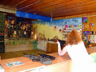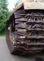 Из траков состоит гусеница танка, а девушка стреляет в тире.