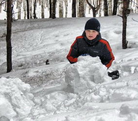 Мальчик слева лепит ком, справа - солдаты на посту.